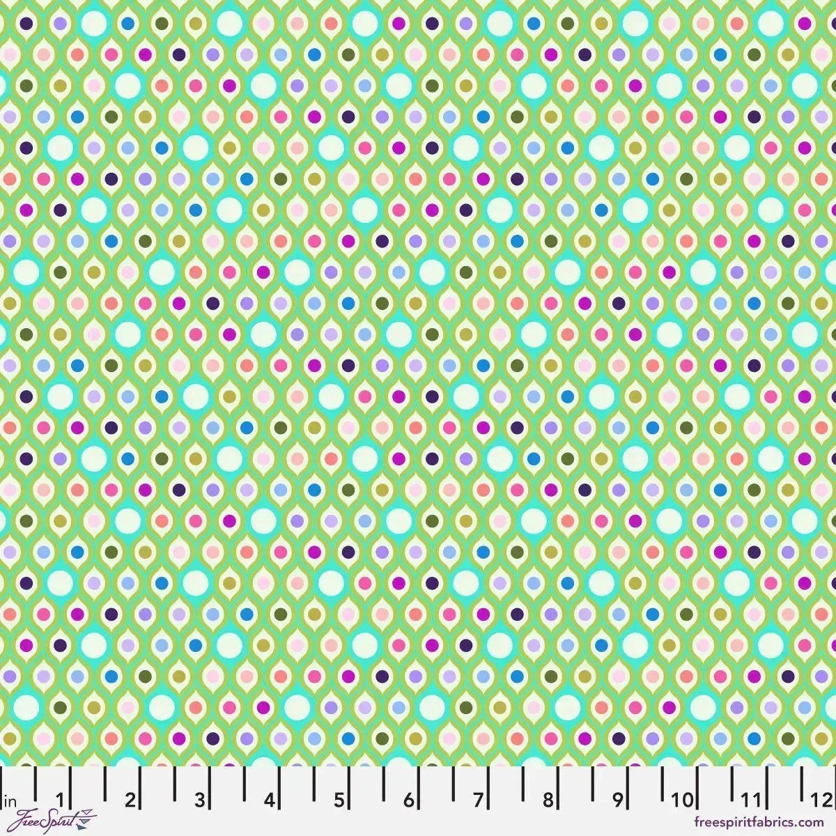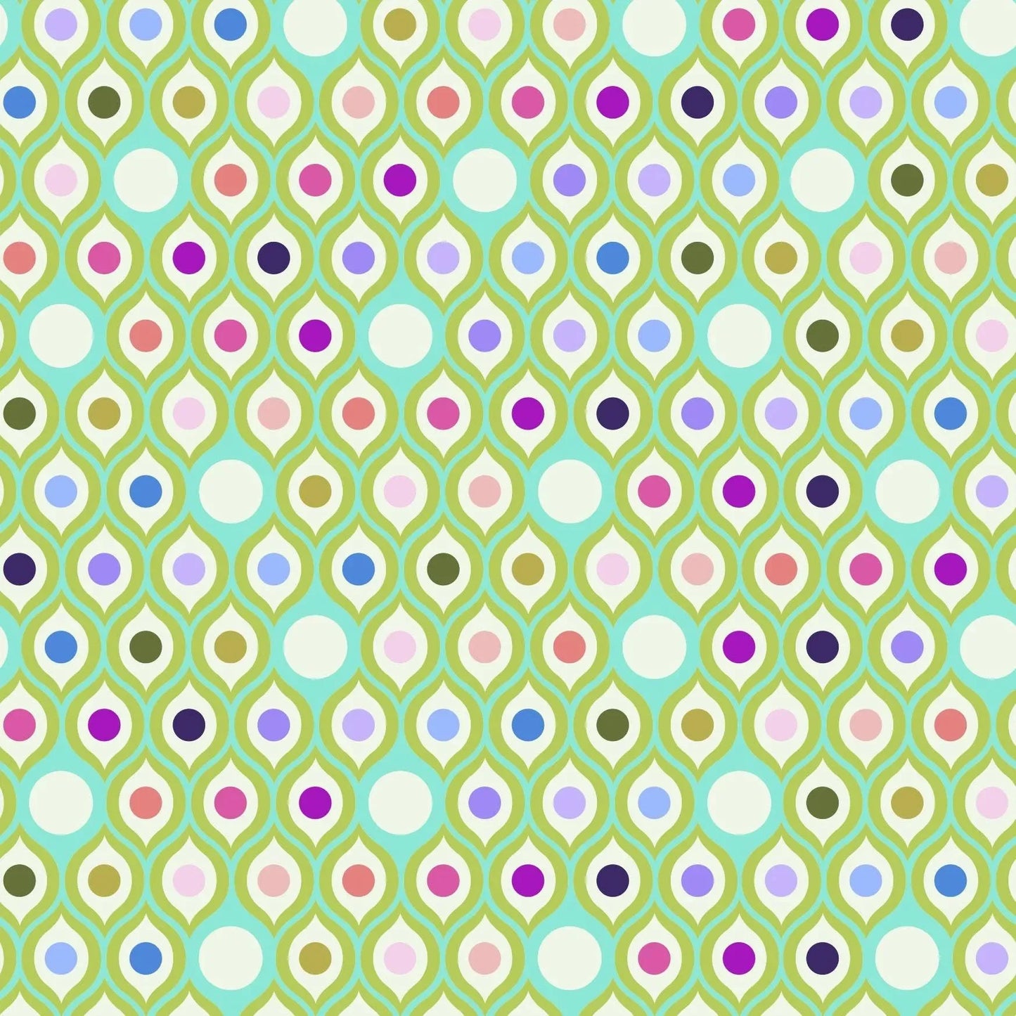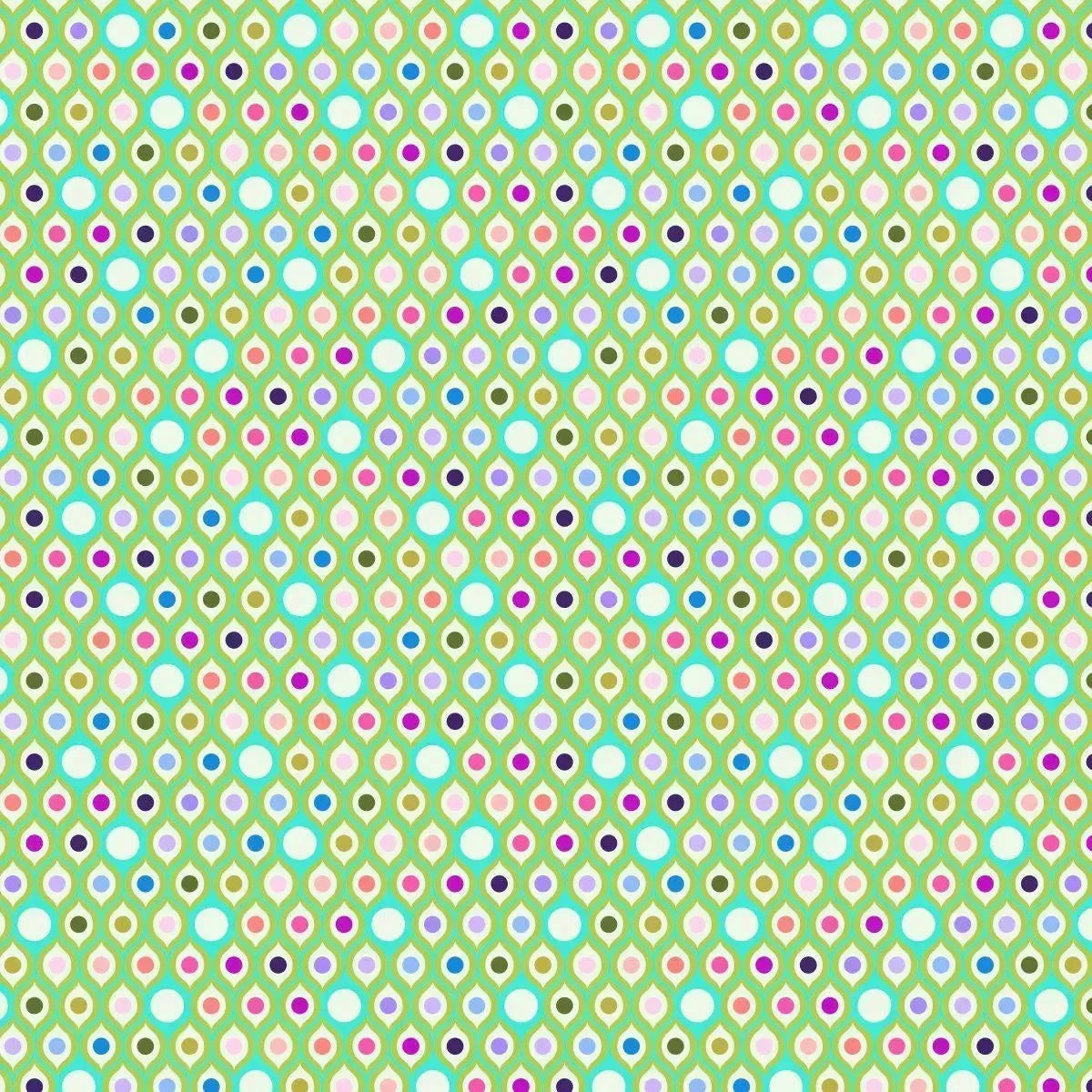 Parisville (Deja Vu) Eye Drops in Mint features colorful dots in an ogee pattern on a mint green background.