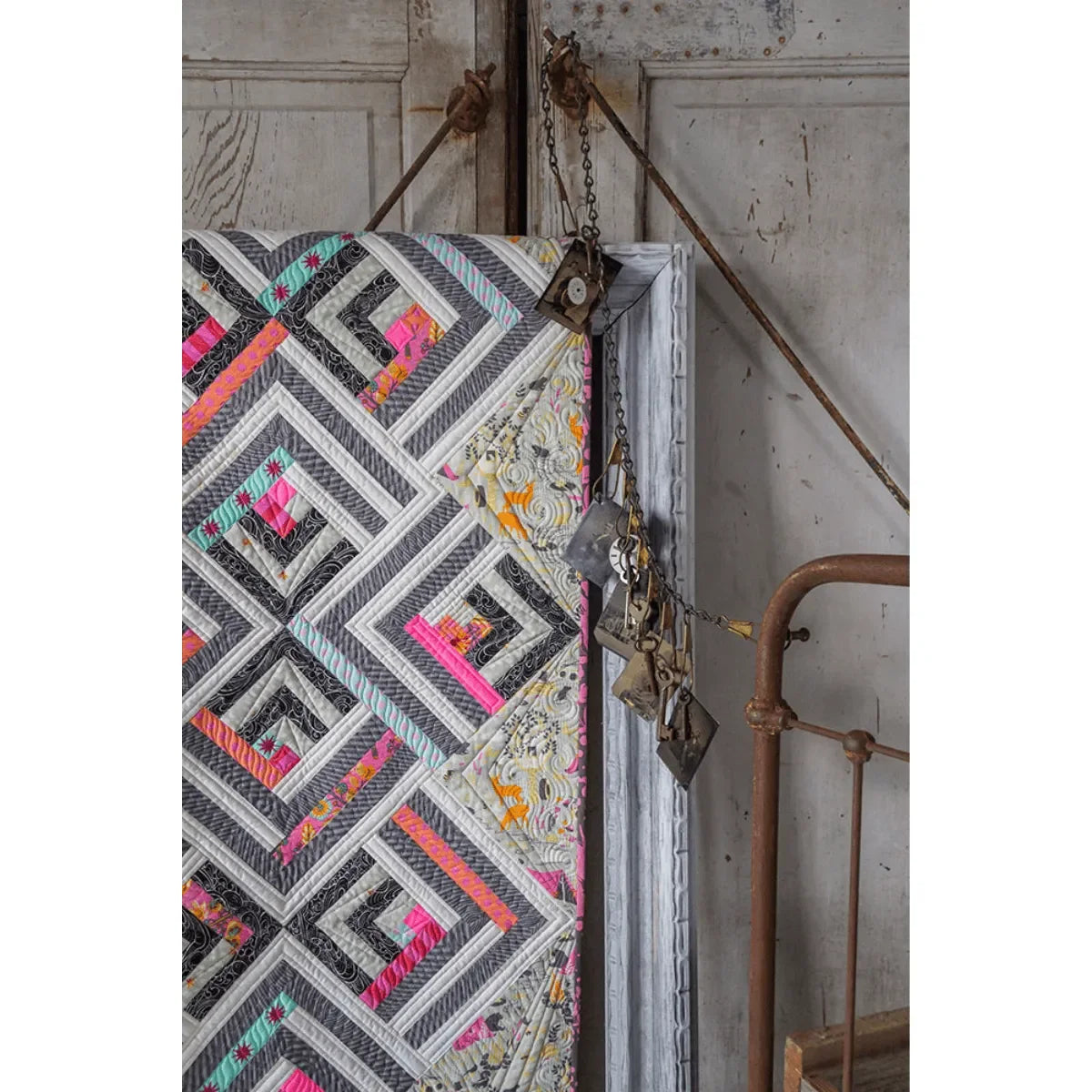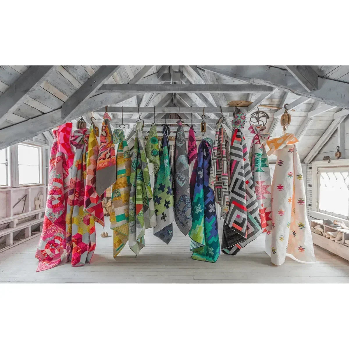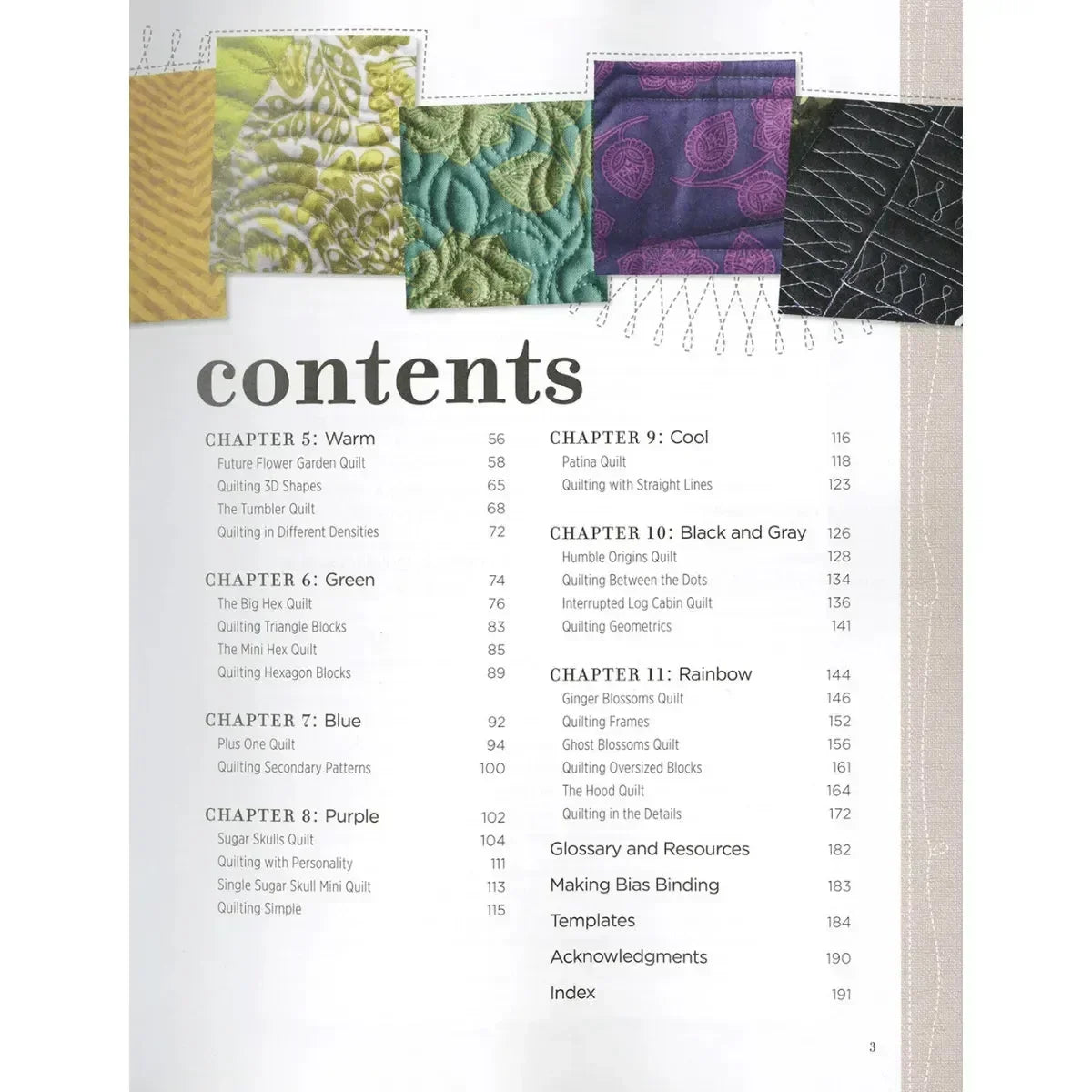 You will also get to eavesdrop on the creative collaboration between Tula and Angela Walters: no vague advice to "quilt as desired" in this book. Angela chooses from 24 quilting motifs she provides to lend the ultimate surface interest to every project. Tips and techniques on binding, backing, piecing, and tools are invaluable, and as always Quilt with Tula & Angela is heavy on colored illustrations.